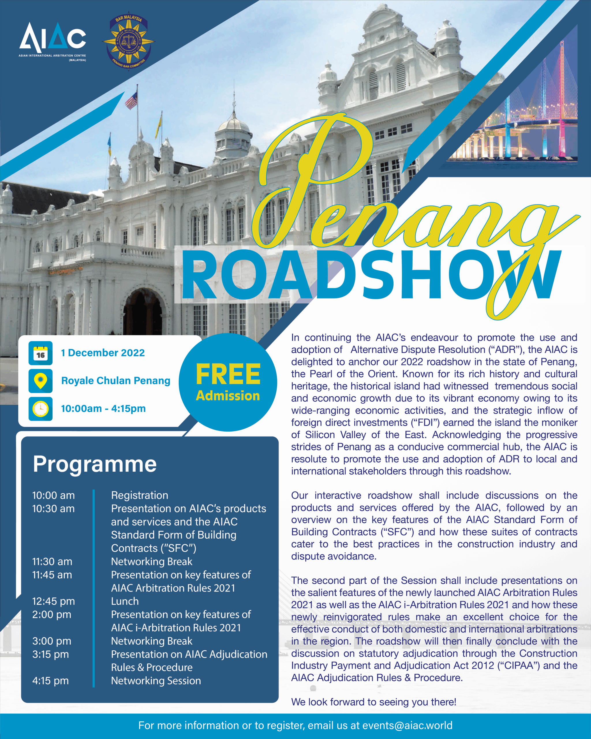 30/22- Asian International Arbitration Centre (Malaysia) | Penang Roadshow (1 Dec 2022)