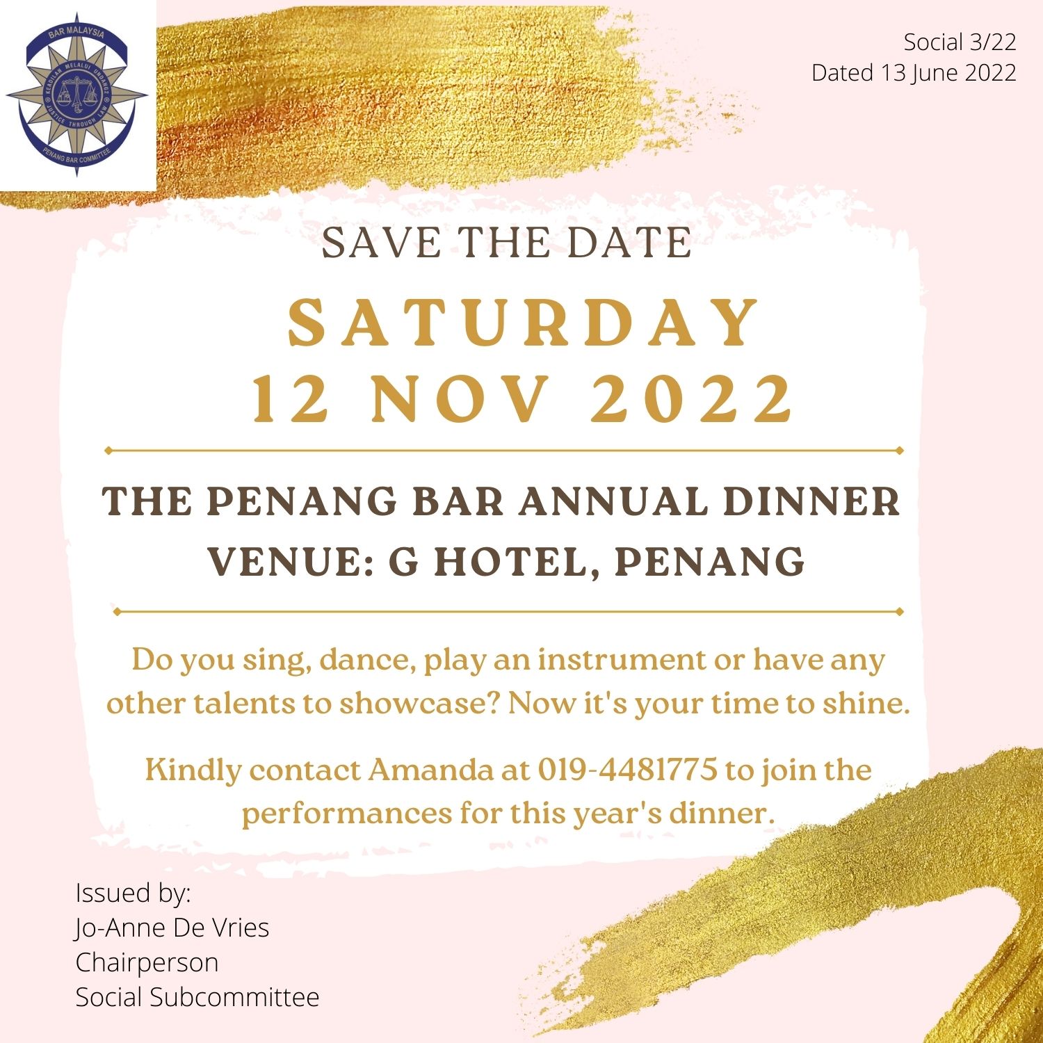 Social 3/22- Penang Bar Annual Dinner – Save the Date!